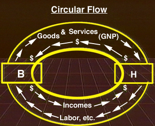 Analyst Richard Gill describes economic transactions by means of what economists call the circular flow. Business produce goods and servicesGNPand sell them to consumers (called households). The same households sell their services their labor or exampleto businesses that use these services to create goods and other services. The businesses pay the households for this labor, thus creating a flow of money income to the households. The households use this income to buy